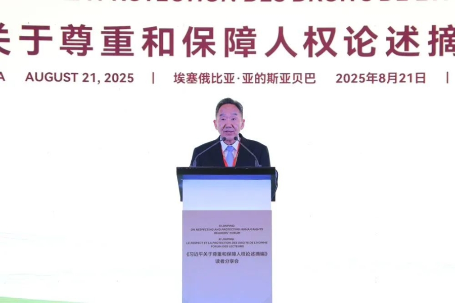 中國古語講“讀萬卷書,行萬里路”。我們不遠(yuǎn)萬里來到友好的埃塞俄比亞、美好的亞的斯亞貝巴,參加《習(xí)近平關(guān)于尊重和保障人權(quán)論述摘編》讀者分享會!這里,我謹(jǐn)代表中國人權(quán)研究會,向各位讀者朋友表示熱烈歡迎!