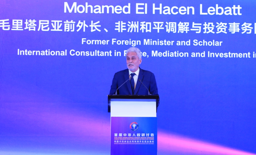 首屆中非人權(quán)研討會22日在埃塞俄比亞首都亞的斯亞貝巴舉辦。圖為毛里塔尼亞前外長、非洲和平調(diào)解與投資事務(wù)國際顧問穆罕默德·埃爾·哈森·勒巴特在開幕式上致辭。主辦方供圖