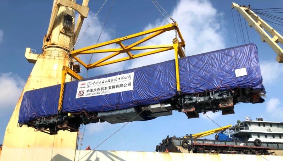 2020年2月18日,由中車大連機車車輛有限公司制造的兩列尼日利亞阿布賈內(nèi)燃動車組,在大連港裝船啟運。中新社發(fā)  邢毅 攝