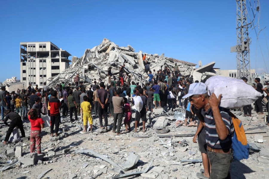 9月8日,人們在加沙城查看一座高層建筑遭以色列軍隊空襲后的廢墟。新華社發(fā)(里澤克·阿卜杜勒賈瓦德攝)