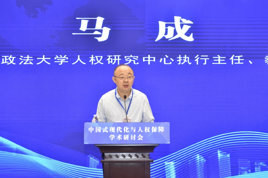 “中國式現(xiàn)代化與人權(quán)保障”學(xué)術(shù)研討會(huì)16日在山東濟(jì)南舉行。圖為西北政法大學(xué)人權(quán)研究中心執(zhí)行主任、教授馬成代表平行論壇(一)作研討總結(jié)。主辦方供圖