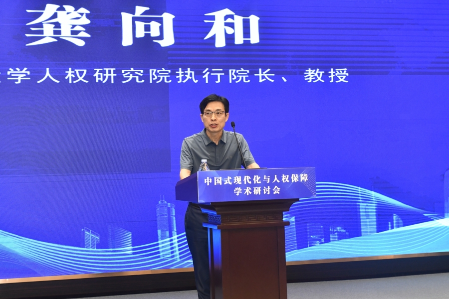 “中國式現(xiàn)代化與人權(quán)保障”學(xué)術(shù)研討會(huì)16日在山東濟(jì)南舉行。圖為東南大學(xué)人權(quán)研究院執(zhí)行院長、教授龔向和代表平行論壇(二)作研討總結(jié)。主辦方供圖