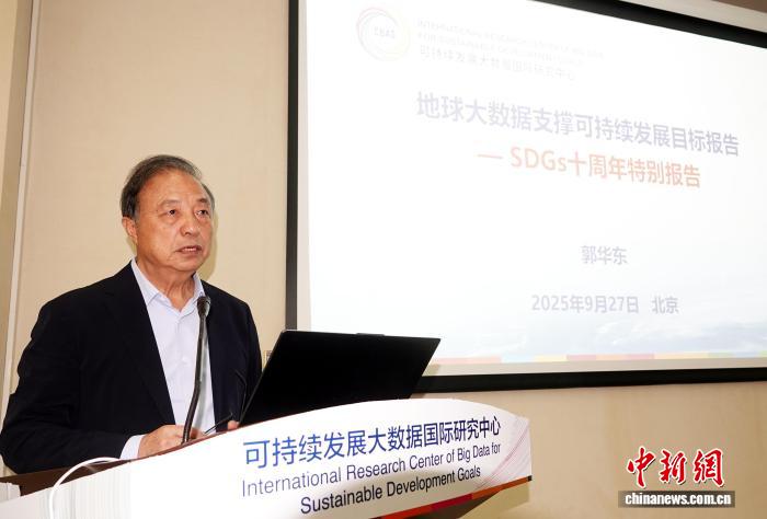中國科學(xué)院院士、可持續(xù)發(fā)展大數(shù)據(jù)國際研究中心主任郭華東解讀《地球大數(shù)據(jù)支撐可持續(xù)發(fā)展目標(biāo)報告——SDGs十周年特別報告》。 中新網(wǎng)記者 孫自法 攝