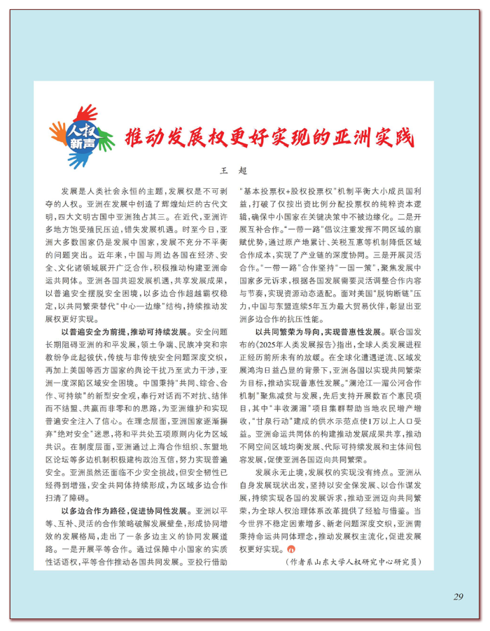 王超:推動發(fā)展權(quán)更好實現(xiàn)的亞洲實踐