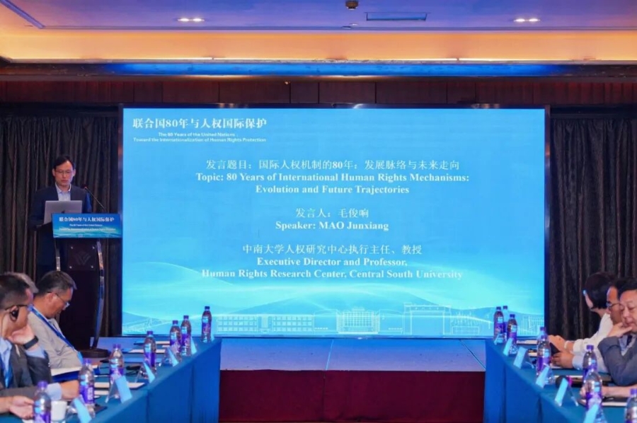 10月18日,“聯(lián)合國80年與人權(quán)國際保護”國際研討會在湖南長沙成功召開。本次研討會由中南大學主辦、中南大學人權(quán)研究中心(國家人權(quán)教育與培訓基地)承辦,來自聯(lián)合國人權(quán)事務高級專員辦事處及中國、英國、德國、愛爾蘭、俄羅斯、土耳其、也門、南非、乍得等國際機構(gòu)和國家的近50名專家學者參與會議。與會代表聚焦“聯(lián)合國八十年人權(quán)歷程的回顧與前瞻”、“國際人權(quán)機制的發(fā)展與貢獻”、“人權(quán)普遍性的全球和地方視角”等重要議題進行了廣泛交流與研討。