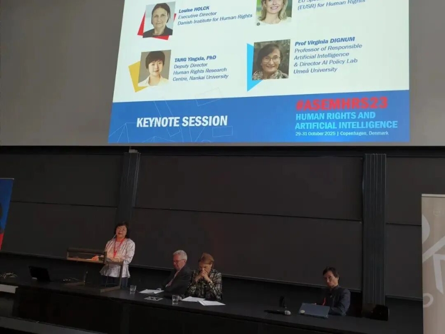 2025年10月29-31日,第23屆亞歐會(huì)議人權(quán)非正式研討會(huì)在丹麥哥本哈根大學(xué)舉行。南開大學(xué)人權(quán)研究中心副主任、南開大學(xué)法學(xué)院副教授唐穎俠受邀參加會(huì)議并做大會(huì)主旨發(fā)言。受亞歐基金會(huì)委托,唐穎俠副教授與瑞典Umeå大學(xué)AI政策實(shí)驗(yàn)室Virginia Dignum教授、Rachele Carli博士合作完成了長達(dá)83頁的會(huì)議背景文件《人權(quán)與人工智能》,在大會(huì)上介紹了亞洲地區(qū)人工智能與人權(quán)的發(fā)展,與來自亞歐各國的參會(huì)代表進(jìn)行了深入的交流。