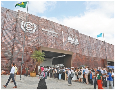 《聯(lián)合國氣候變化框架公約》第三十次締約方大會正在巴西貝倫舉行。圖為與會代表進入會場。本報記者 陳一鳴攝