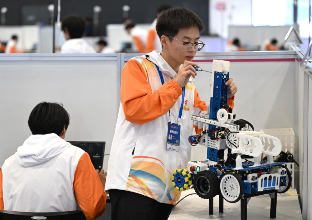 9月19日至23日,第三屆全國(guó)技能大賽在河南鄭州舉行。這是選手在自主移動(dòng)機(jī)器人項(xiàng)目比賽中。新華社記者 李嘉南 攝