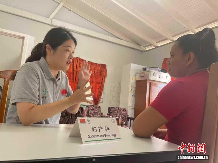 婦產(chǎn)科李妍雨醫(yī)生給當(dāng)?shù)鼗颊哌M(jìn)行咨詢。第21期援圭亞那中國(guó)醫(yī)療隊(duì)供圖