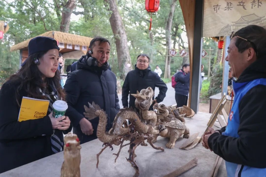 2025年11月18日,戴維·洛佩斯(圖左二)跟隨“人權(quán)行動看中國·2025”江西行活動參訪團(tuán)走進(jìn)江西樂安流坑古村。中新社記者 劉力鑫 攝