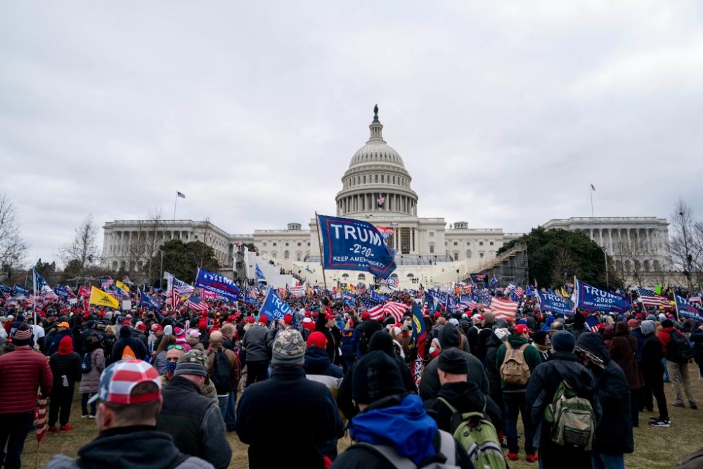 2021年1月6日,在美國首都華盛頓的國會大廈前,特朗普的支持者舉行示威游行。新華社記者劉杰攝