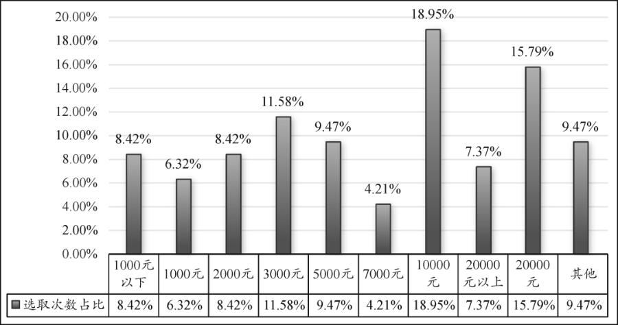 在責(zé)任標(biāo)準(zhǔn)上:一方面,人民法院進(jìn)行精神損害賠償裁判時(shí)尚無(wú)精神損害責(zé)任數(shù)額的計(jì)算公式或表格,往往是選取幾個(gè)固定的賠償數(shù)額加以判斷。根據(jù)檢索到的600余份裁判文書(shū),排除駁回原告起訴的裁判,在剩余文書(shū)中可粗略統(tǒng)計(jì)出認(rèn)可數(shù)額的概率(見(jiàn)圖2)。從中不難發(fā)現(xiàn),我國(guó)人民法院認(rèn)定精神損害賠償一般選取1000元、2000元、3000元、5000元、10000元、20000元等數(shù)額,而不同數(shù)額所對(duì)應(yīng)的精神損害并未形成科學(xué)的梯度差距,由此產(chǎn)生相應(yīng)責(zé)任的認(rèn)定是否客觀不無(wú)疑問(wèn)。即使在案件情形幾乎完全相同、僅存在主體區(qū)別的案件中,人民法院也可能認(rèn)定不同的賠償數(shù)額,這更容易引發(fā)賠付者乃至第三方的不滿。值得注意的是,人民法院一般只對(duì)造成死亡或廣泛嚴(yán)重后果的傷害者判處20000元以上的精神損害賠償,顯然不足以彌補(bǔ)受害人一方的實(shí)際損失。除此以外,對(duì)3000元、5000元甚至7000元的賠償數(shù)額,所對(duì)應(yīng)的損害情形很難區(qū)分出實(shí)際損害的強(qiáng)弱;在部分案件中,人民法院判處明顯處于不同損害狀態(tài)的主體以相同的賠償額度,采取判決總賠償額后均分的方式處理糾紛。